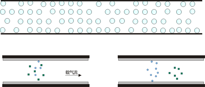 由于載氣的帶動,樣品向色譜柱的右端移動,多組分的混合氣體通過色譜柱時,被色譜柱內(nèi)的固定相所吸附,由于氣體分子種類不同,被固定相吸附的程度也不同,因而通過柱子的速度產(chǎn)生差異,在柱出口處混合氣體被分離成各個單一組分。